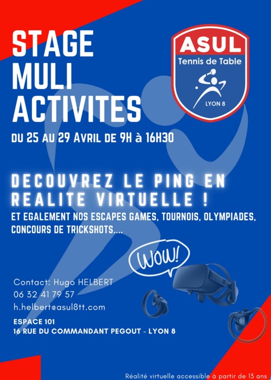 L'ASUL 8 TT organise un stage multi-activité du lundi 25 au Vendredi 29 avril 2022